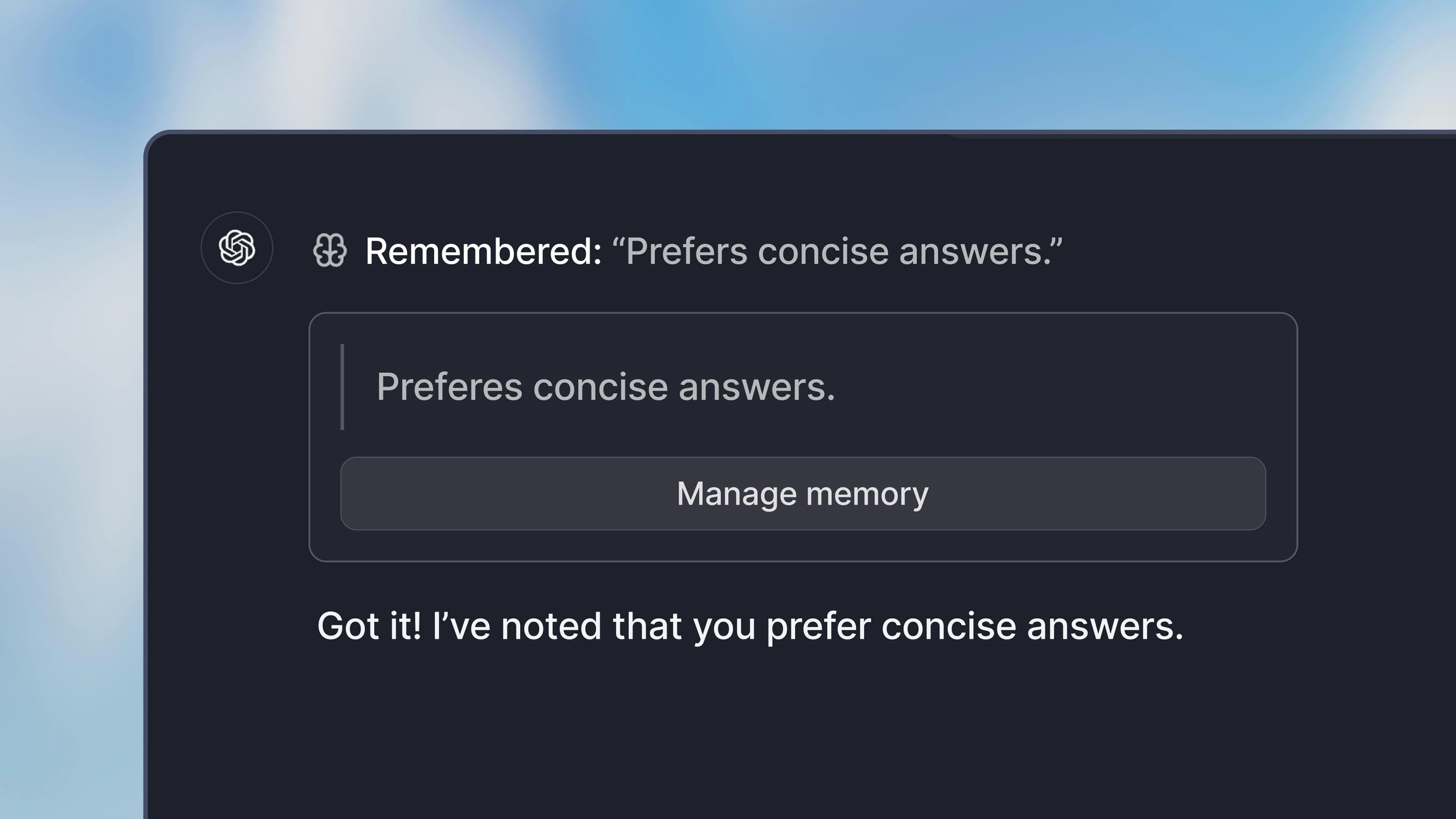 Memory is a way to store information in the model’s context. This information can be used to improve the model’s responses to questions or to perform tasks in the future. Additionally, it allows you to carry over context from one conversation to the next.